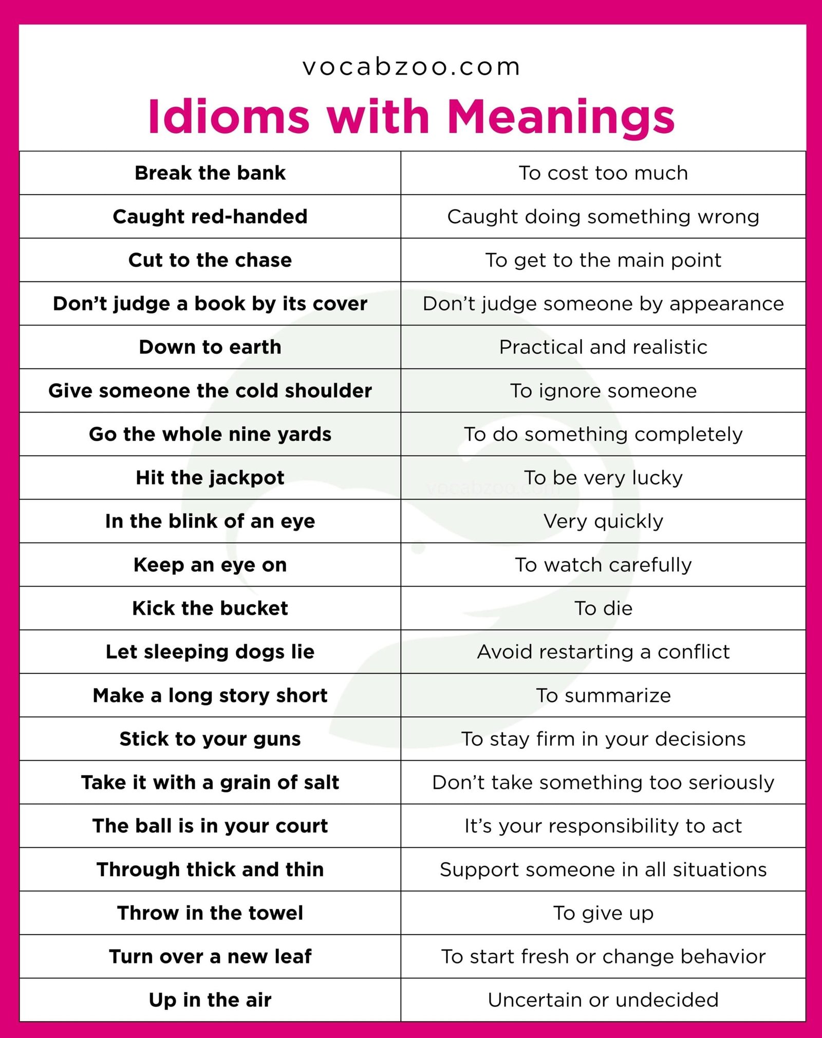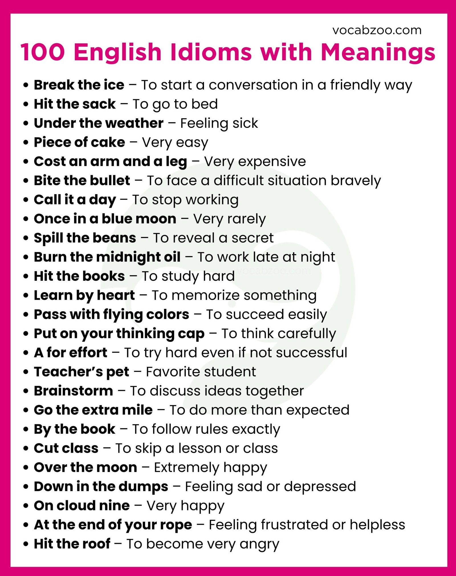 100 Idioms in English with Meanings