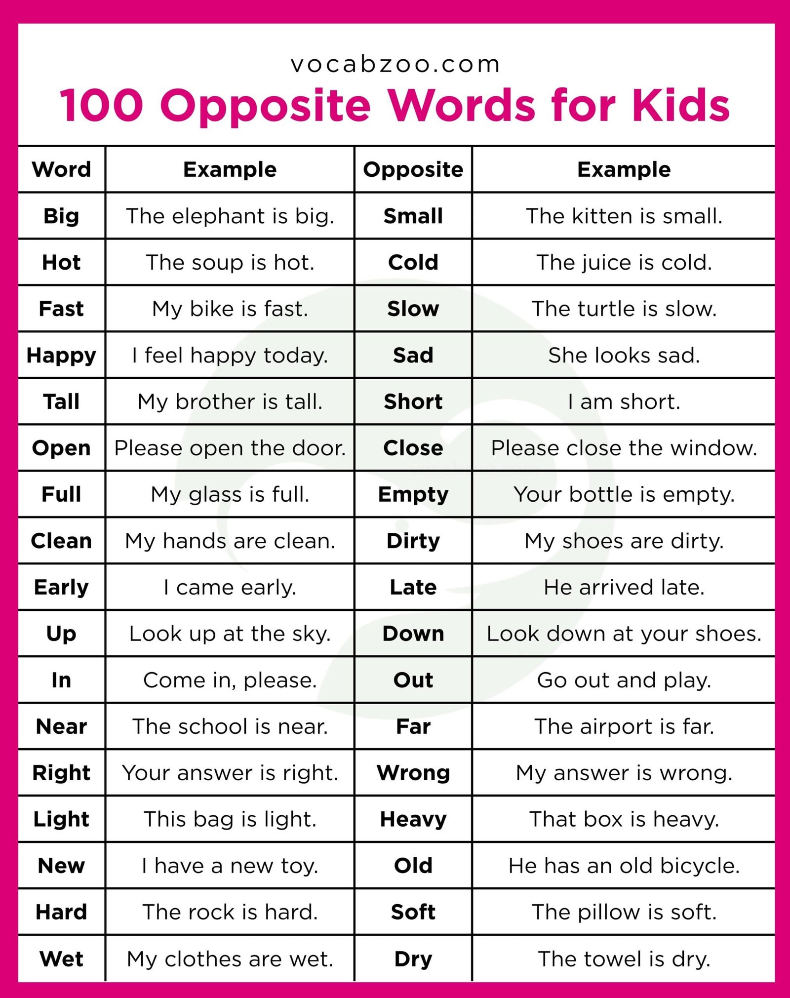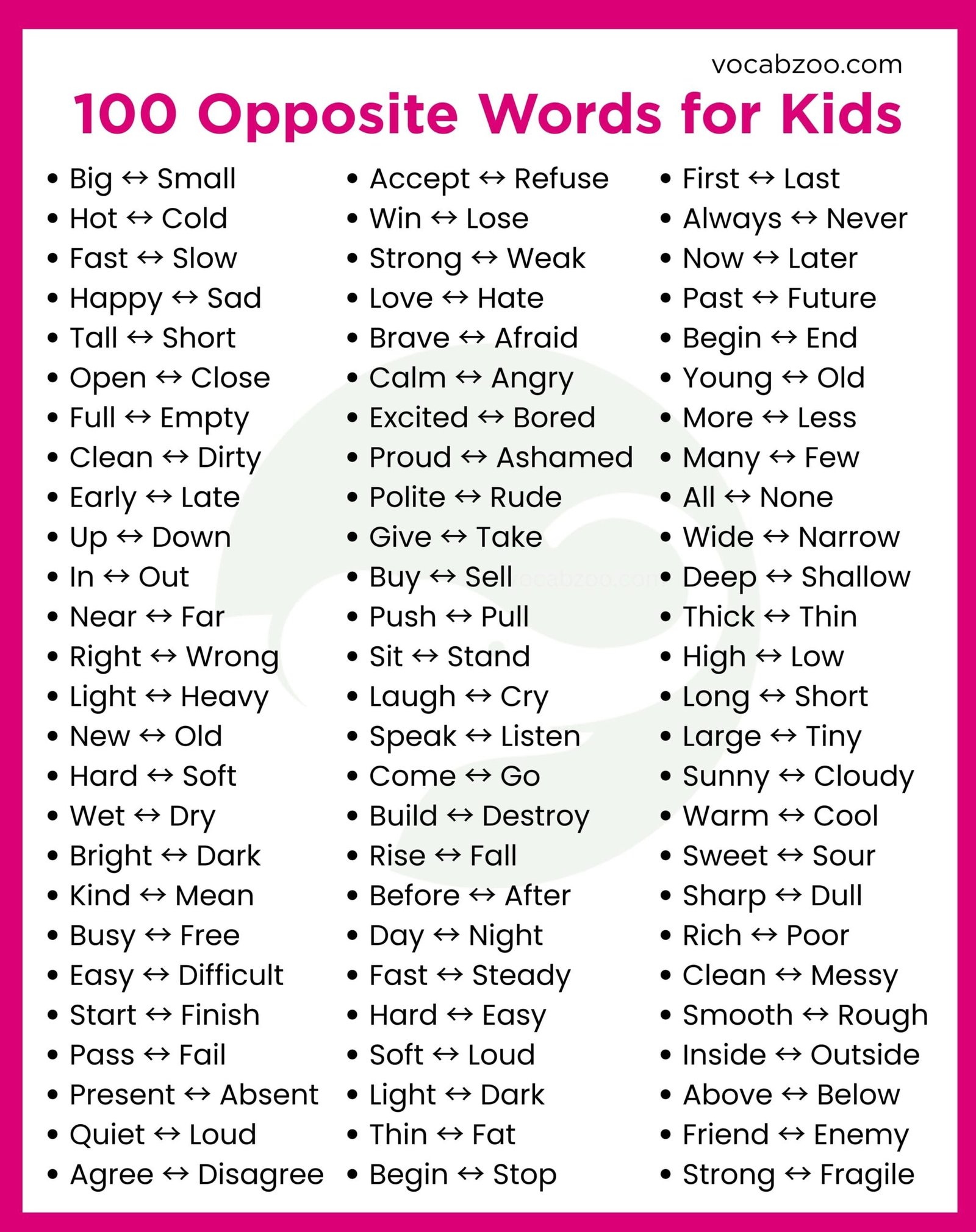 100 Opposite Words for Kids