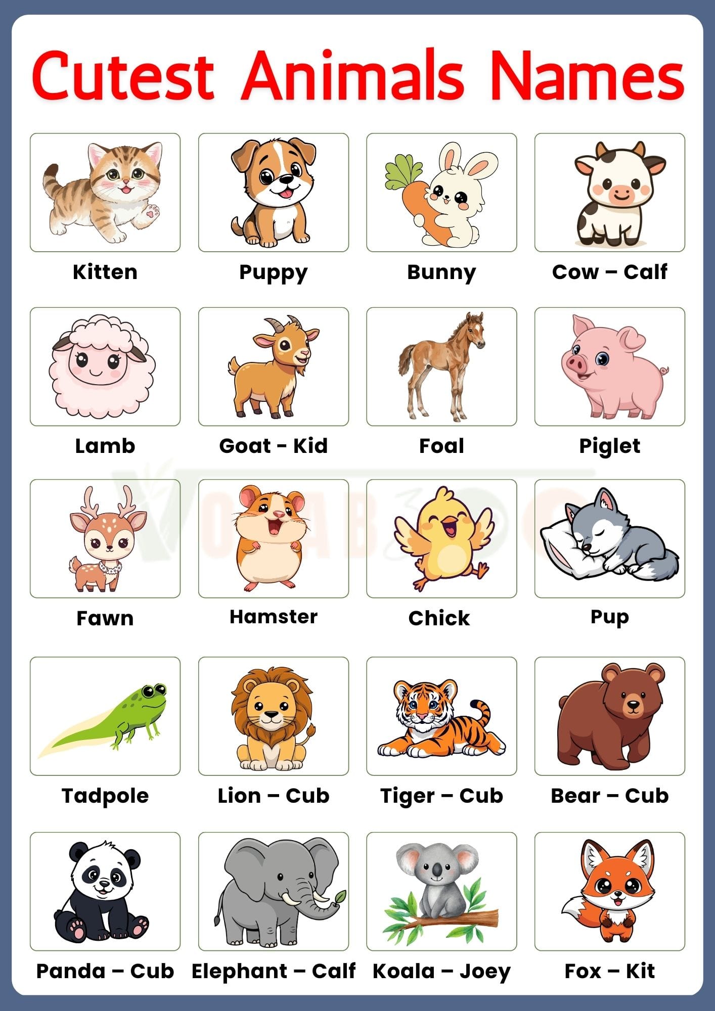 Many animals are loved for their sweet looks and gentle behavior. In this blog post, you will discover the top 30 cutest animals names in English with their pictures. Learning these names improves your vocabulary, speaking, and reading skills, and helps you describe animals more clearly. By seeing their pictures along with the names, you can remember them easily and enjoy learning English while exploring the world of cute animals.
