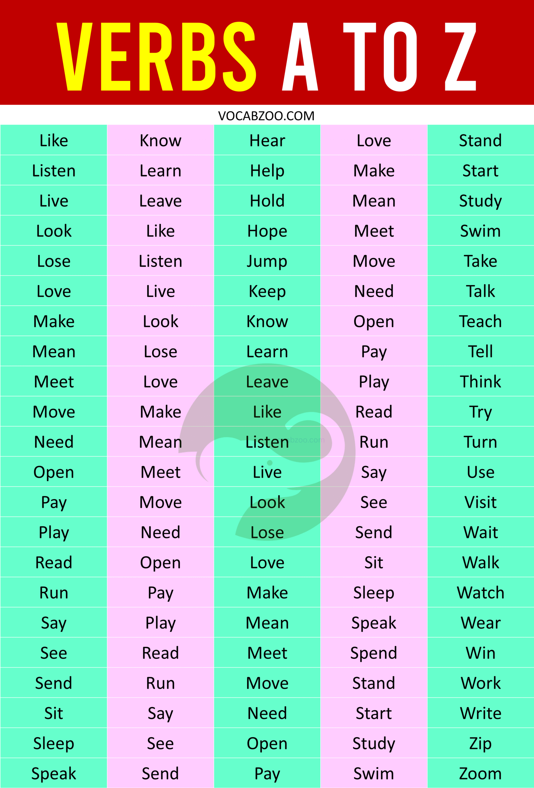 Learning the A to Z list of verbs helps improve your speaking, writing, and understanding of English. It builds your vocabulary and makes your sentences clear and correct.