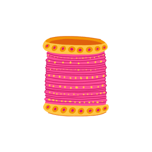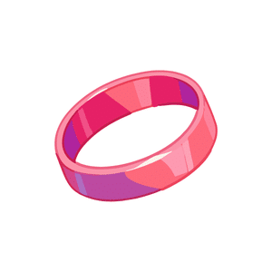 A bangle is a rigid bracelet, usually circular in shape. It is worn around the wrist and is often made of metal, plastic, or glass.