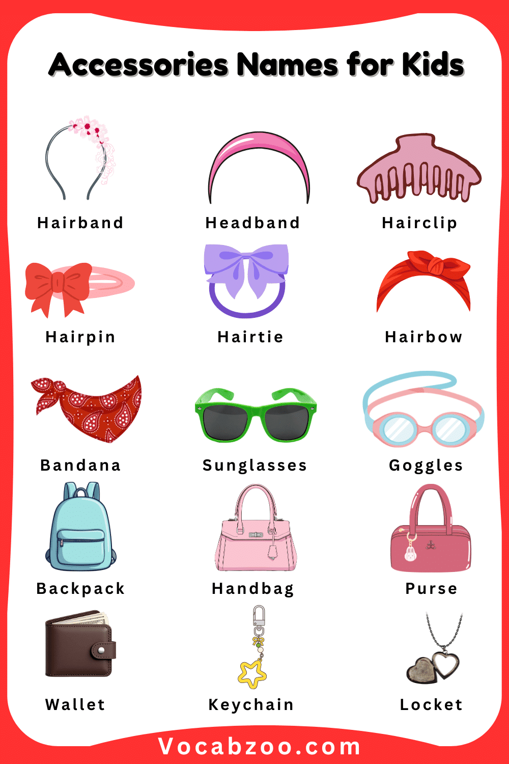 Names of Accessories for Kids with Pictures