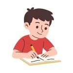 Write: She writes her homework in a notebook.