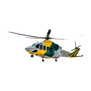 A rescue helicopter is used during emergencies to save people from accidents, disasters, or difficult locations.