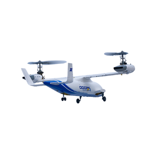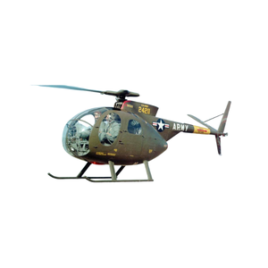 A helicopter aircraft has spinning blades on top. It can take off and land vertically and hover in one place easily.
