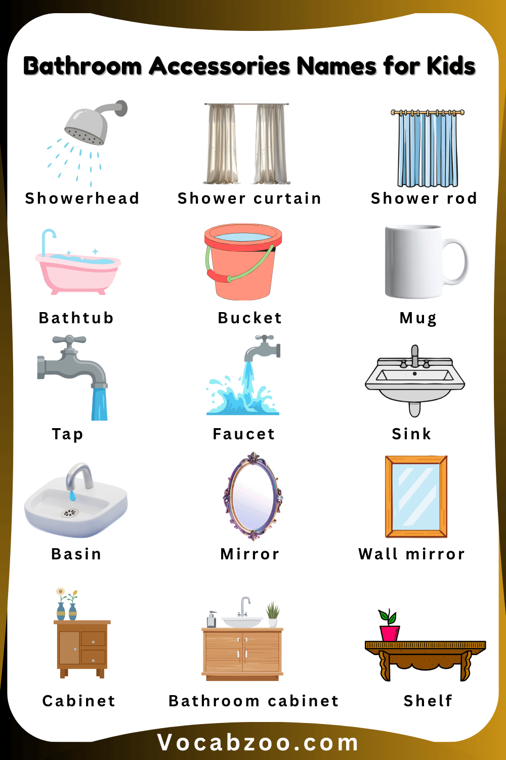 Bathroom Accessories Names for Kids