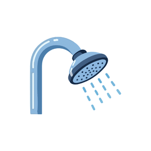 A shower is a place or device where water flows from above for bathing. It helps clean the body quickly and easily.