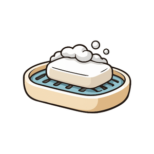 Soap is a cleaning product used with water to remove dirt, germs, and oil from the skin, keeping hands and body clean and fresh.