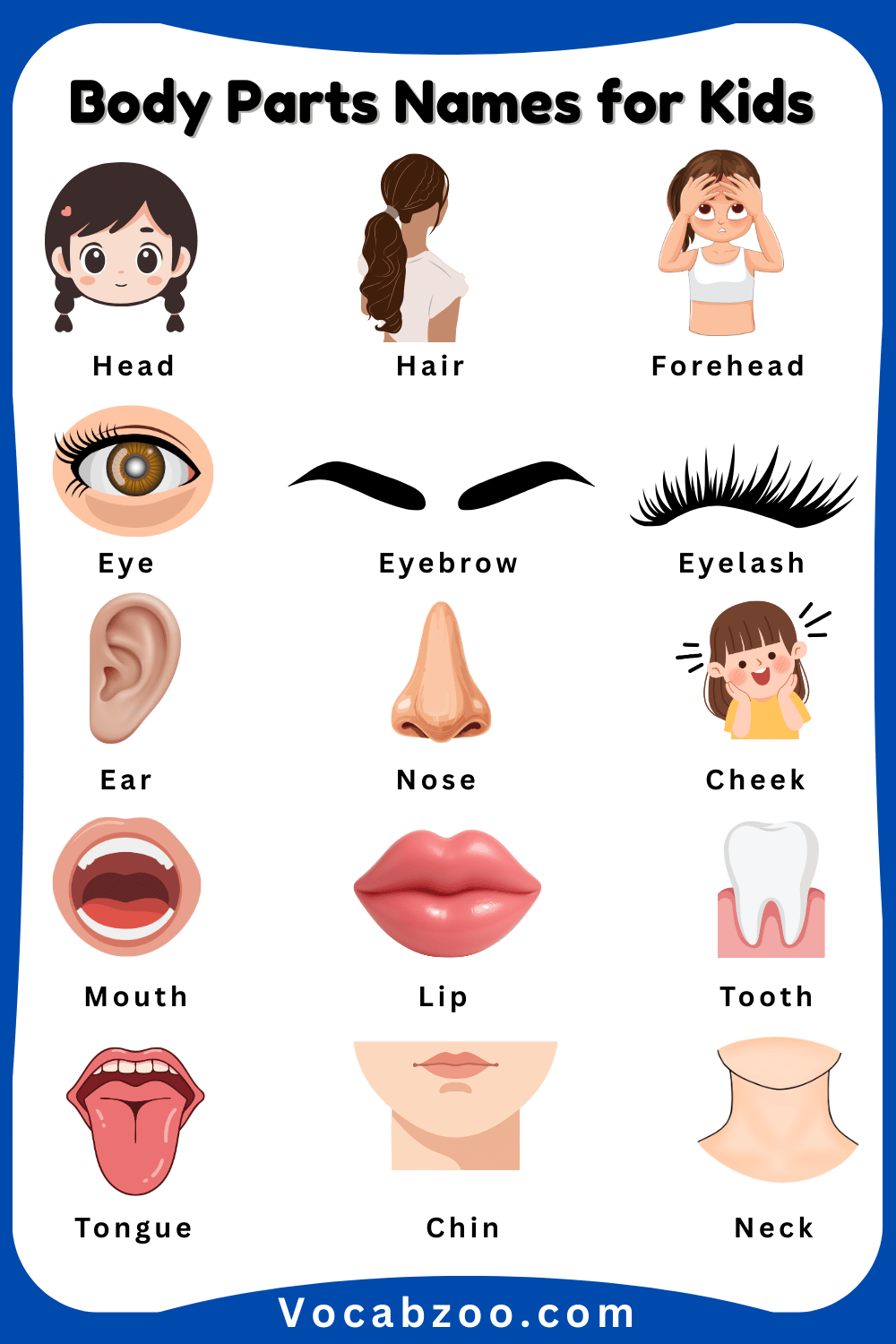 90 Body Parts Names for Kids in English and Pictures