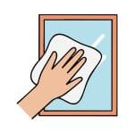 Move a cloth across a surface to remove dust, spills, or light dirt.