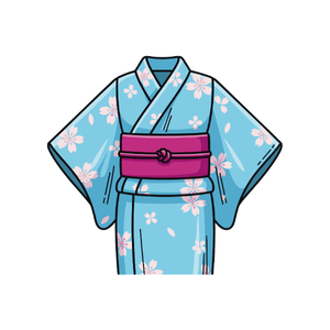 A kimono is a traditional Japanese robe with long sleeves. It wraps around the body and is tied with a wide belt called an obi.