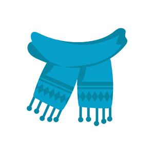 A scarf is a long piece of cloth worn around the neck or head. It helps keep the body warm in cold weather.