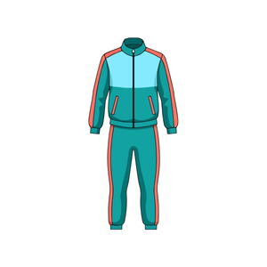 A tracksuit is a comfortable outfit made of a jacket and matching pants. It is usually worn for sports, exercise, or relaxing activities.