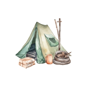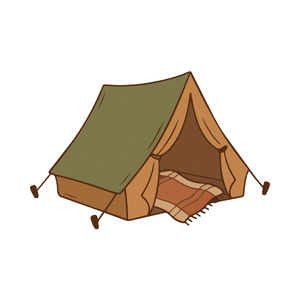 A tent is a portable shelter made of fabric, used for living or resting in the desert. It is easy to set up and protects from sun and wind.