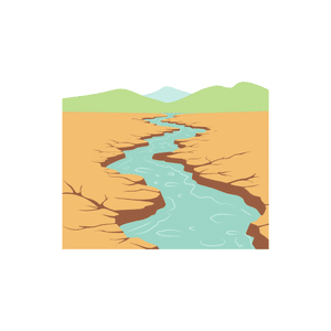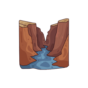 A canyon is a deep valley with steep sides formed by water erosion over time. In deserts, it often appears dry but shows signs of past water flow.