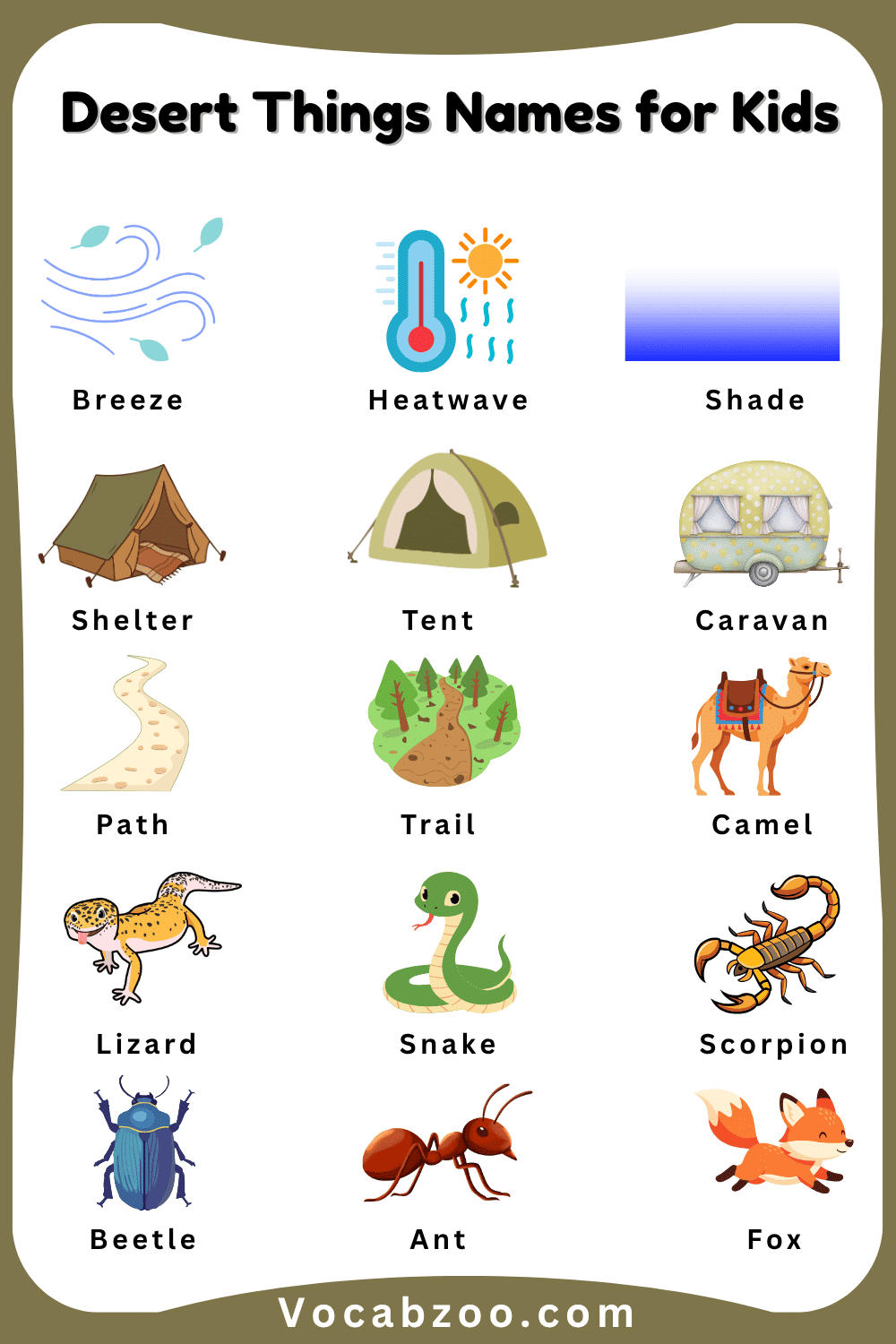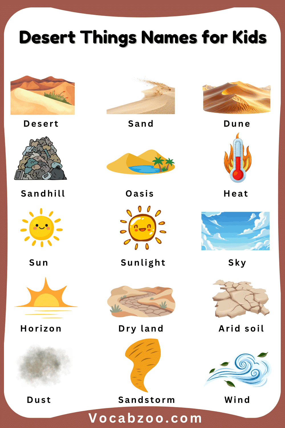 Heat is the strong warmth felt in the desert, especially during the day. It comes from the sun and makes the environment very hot and dry.