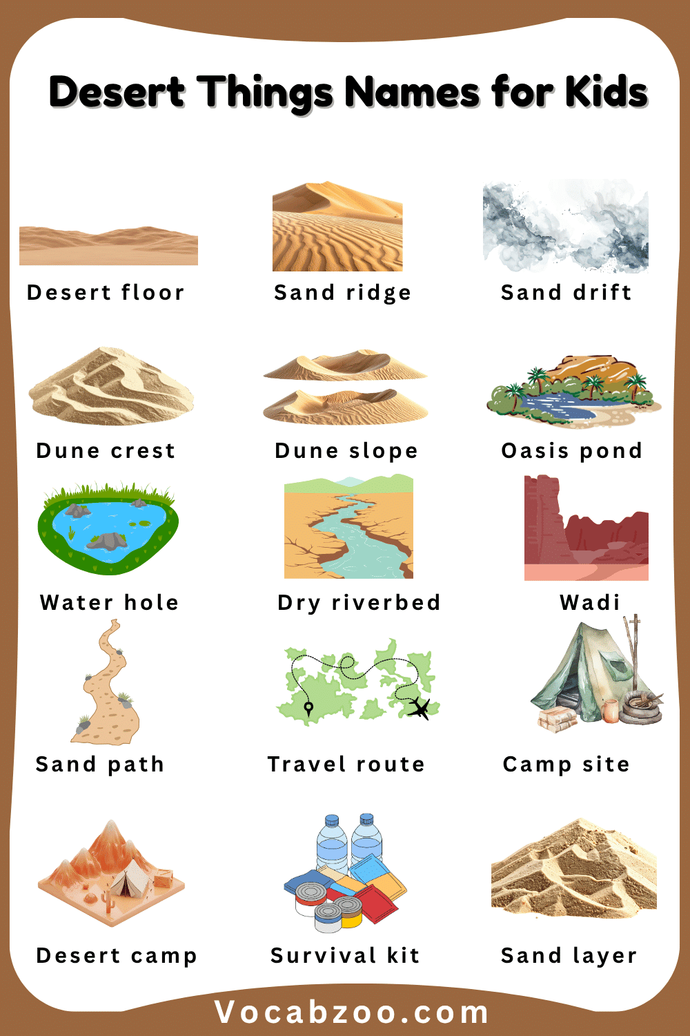 A survival kit is a set of important items used in emergencies. In deserts, it may include water, food, tools, and supplies for safety.
