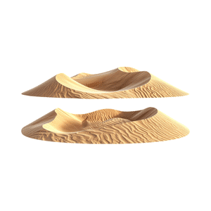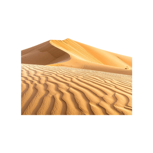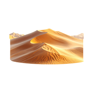 A dune is a hill of sand formed by the wind in a desert. It can change shape and move slowly as the wind blows across it.