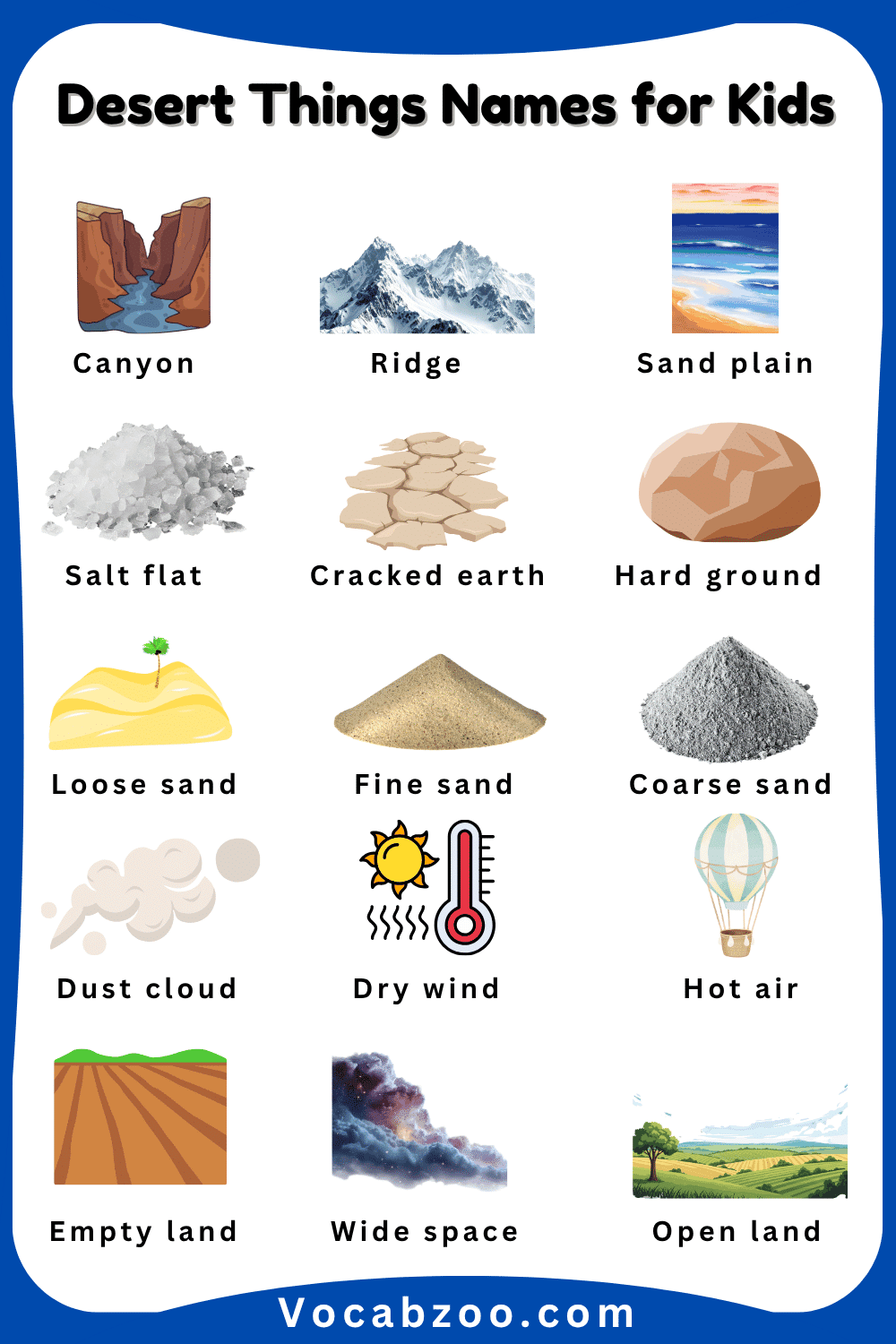 The horizon is the line where the sky appears to meet the land. In deserts, it looks wide and open because there are few trees or buildings.