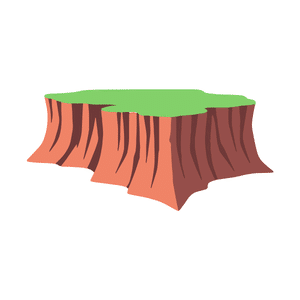 A plateau is a large, flat area of land raised above the surrounding ground. It is common in deserts and often has dry and rocky surfaces.