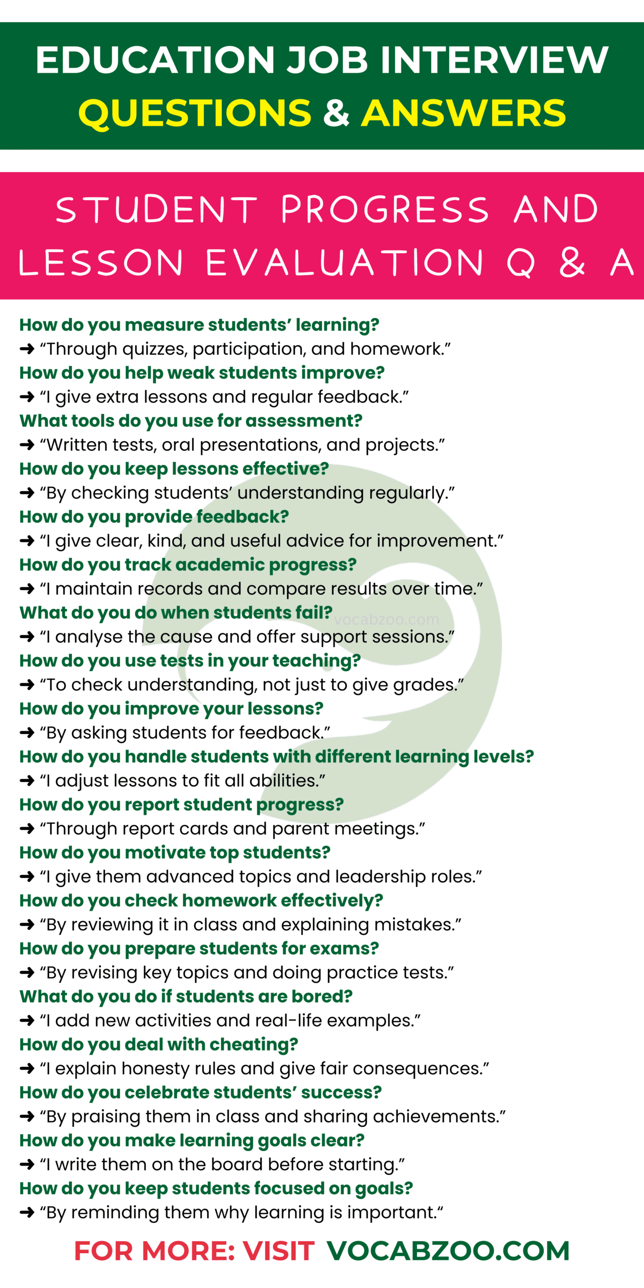 5. Student Progress and Lesson Evaluation Questions and Answers
