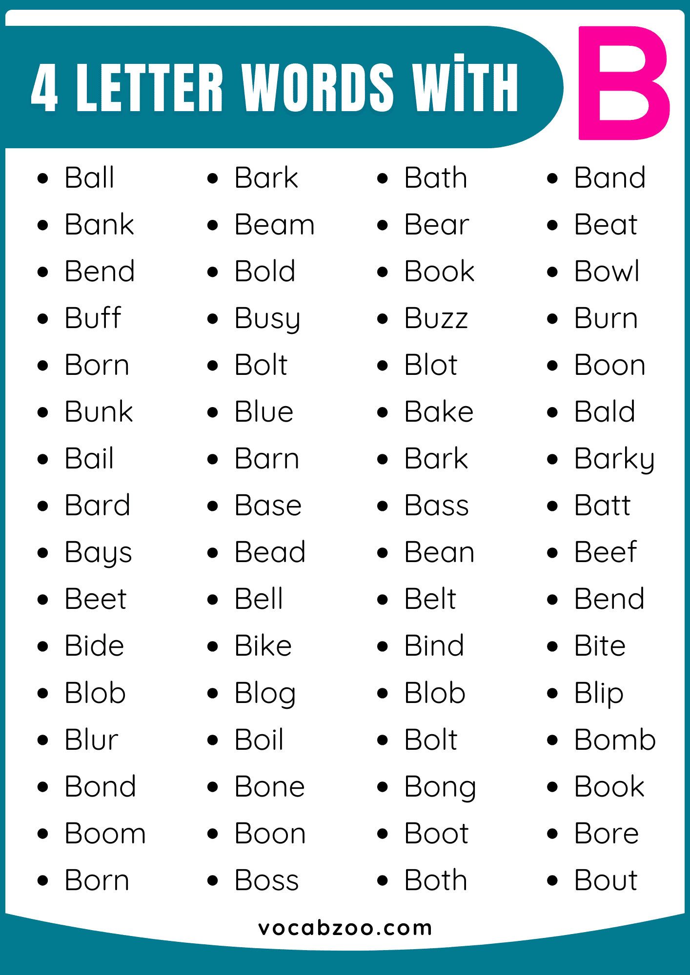 Four Letter Words that Start with B in English | B-Words List