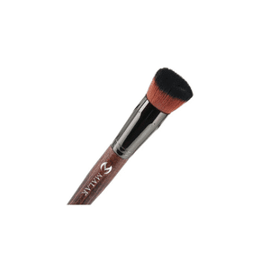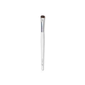 Angled brush has slanted bristles designed for precise application, commonly used for eyebrows, eyeliner, or contouring, helping create sharp lines and defined shapes on the face.