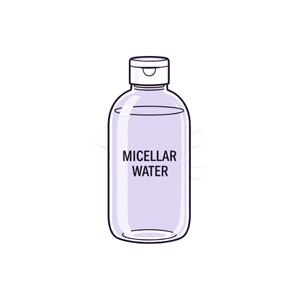 Micellar water is a gentle liquid cleanser containing tiny cleansing molecules that attract dirt and makeup, removing them easily without harsh rubbing or rinsing.