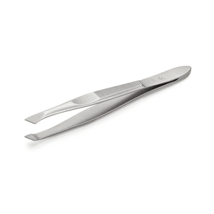 Tweezers are small tools used to pluck unwanted eyebrow hairs or apply false lashes, helping maintain clean, shaped brows and precise grooming.