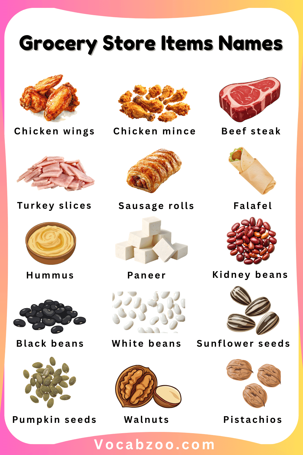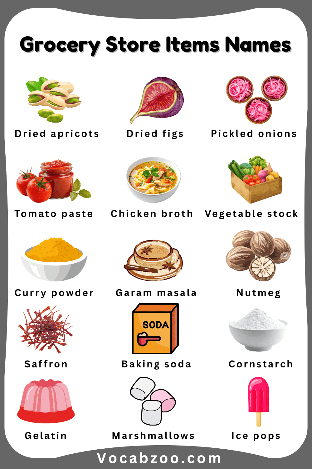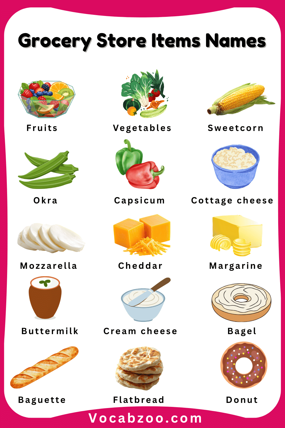 Grocery Store Items Names for Kids