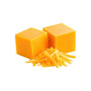 Cheddar is a hard, yellow or white cheese with a strong flavor. It is widely used in sandwiches, burgers, and cooked meals for rich taste.