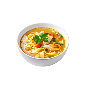 Chicken broth is a light liquid made by boiling chicken and water. It is used as a base for soups, sauces, and cooking dishes.