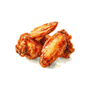 Chicken wings are small pieces of chicken meat from the wing part. They are usually fried, baked, or grilled and served as a popular snack or meal.