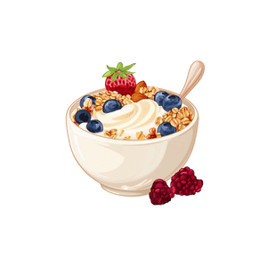 Granola is a mixture of oats, nuts, and honey baked until crispy. It is eaten as a healthy breakfast or snack with milk or yogurt.