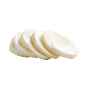 Mozzarella is a soft, white cheese made from milk. It melts easily and is commonly used on pizzas, sandwiches, and baked dishes for creamy texture.