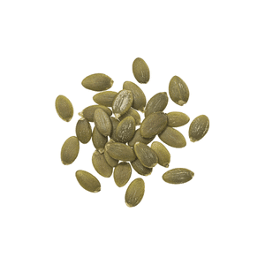 Pumpkin seeds are flat, green edible seeds from pumpkins. They are rich in protein and minerals and are eaten roasted or added to foods.