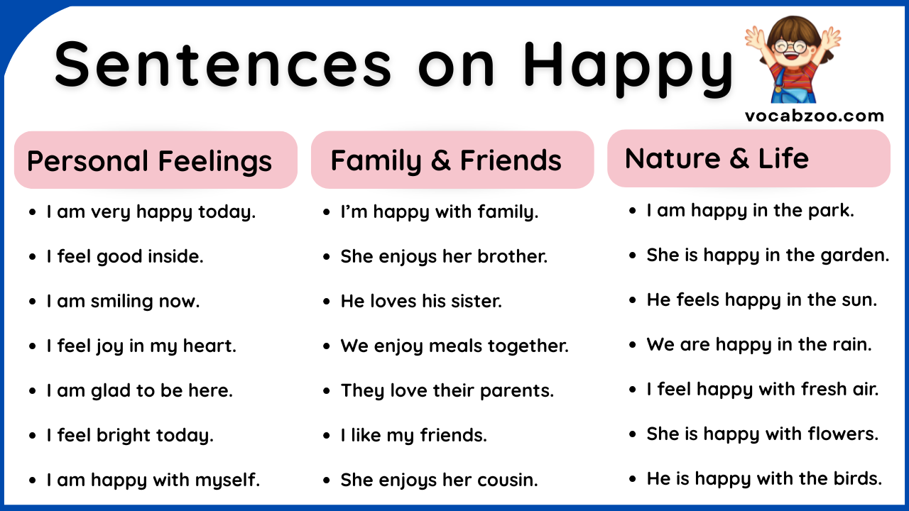 In this part, you will see some easy and short sentences that show happiness. You can use these sentences in daily life.