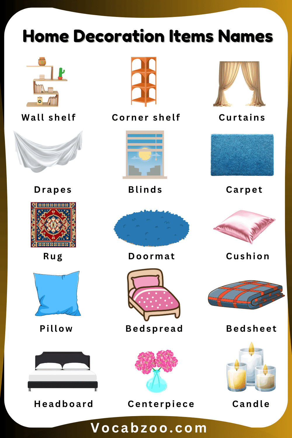 Home Decoration Items Names for Kids in English and Pictures