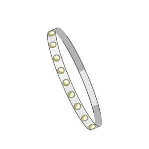 An alloy bangle is made from a mixture of different metals. It is strong, affordable, and can be designed in many beautiful and colorful styles.