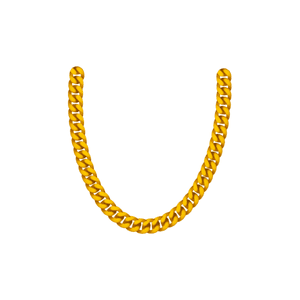 A gold chain is a necklace made from gold metal links. It is valuable, shiny, and worn alone or with a pendant for decoration.