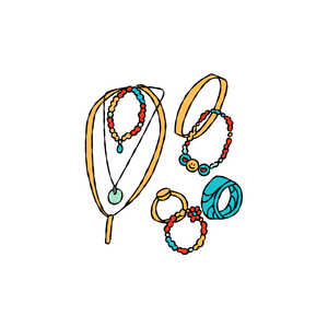 A chain is a series of connected metal links used as jewelry. It is commonly worn around the neck or wrist.