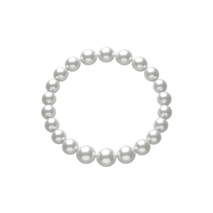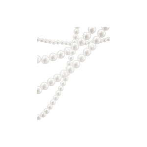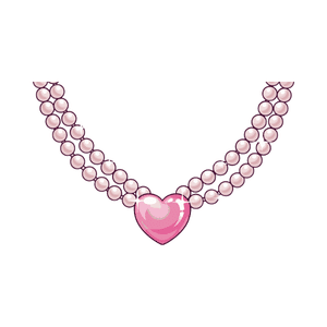 A pearl necklace is made of smooth, round pearls strung together. It looks elegant and is often worn on special occasions or formal events.