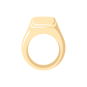 A signet ring is a ring with a flat top, often engraved with a symbol or initials. It has been traditionally used to show identity or family heritage.