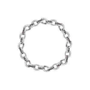 A silver chain is made from silver metal links joined together. It is simple, shiny, and commonly worn around the neck for everyday style.