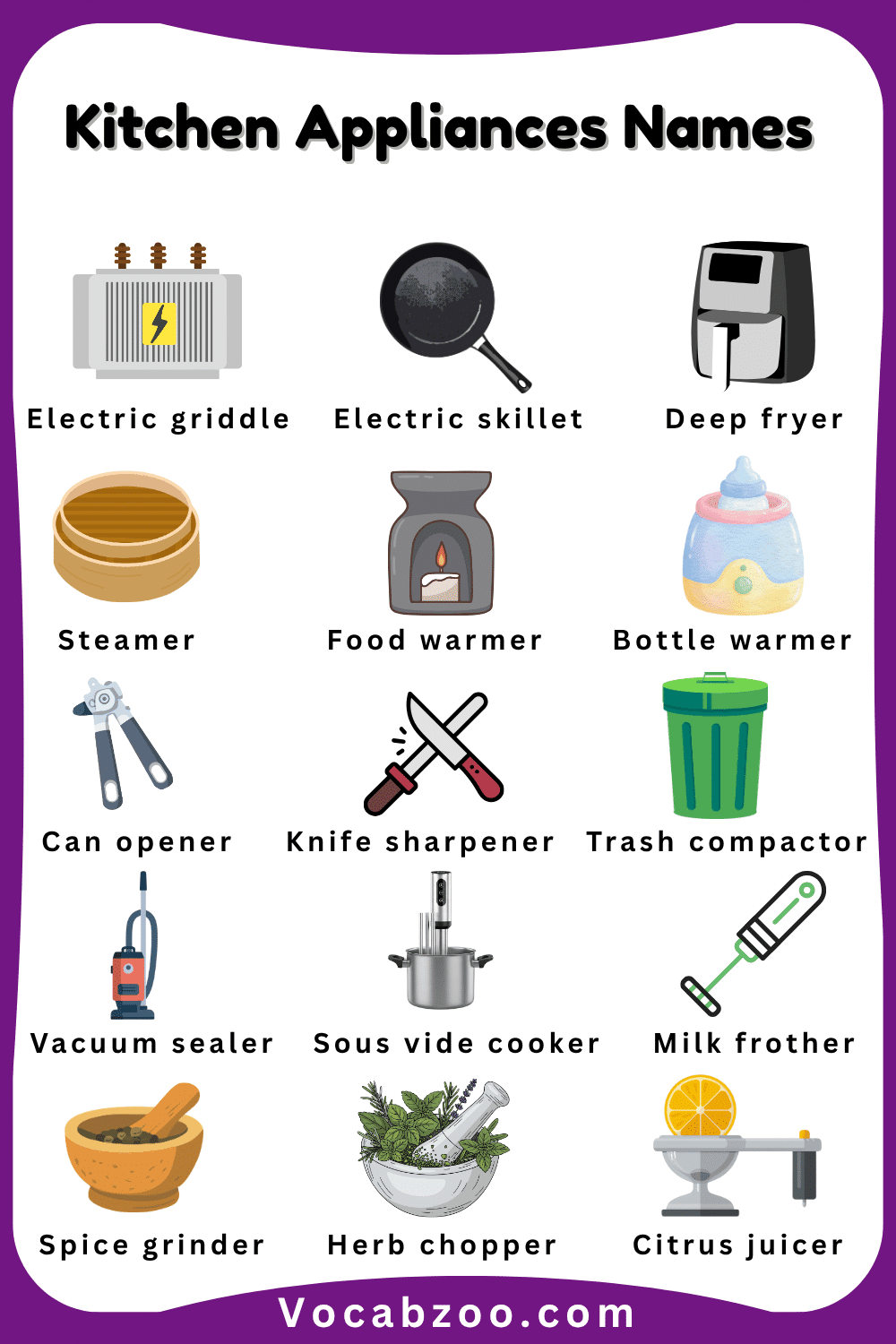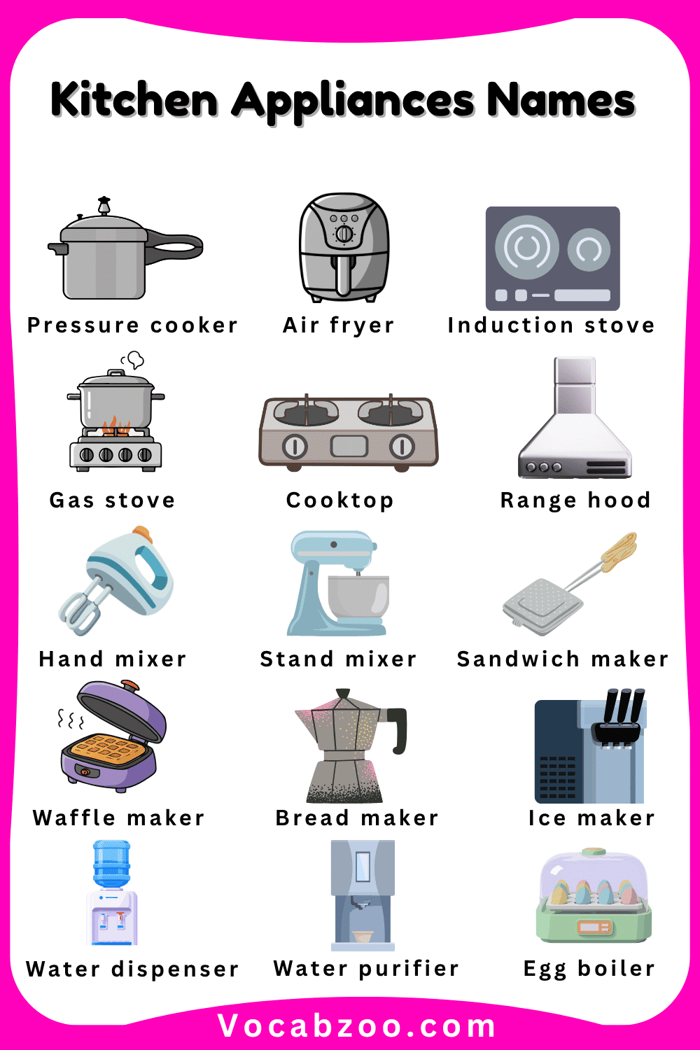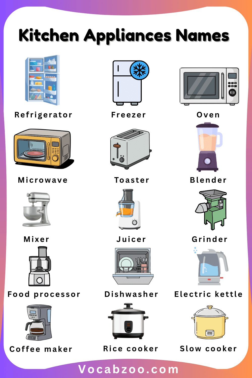 90 Kitchen Appliances Names for Kids in English and Pictures