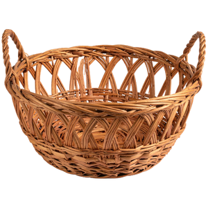 A basket is a container made from woven materials used to carry or store fruits, vegetables, bread, or other kitchen items.
