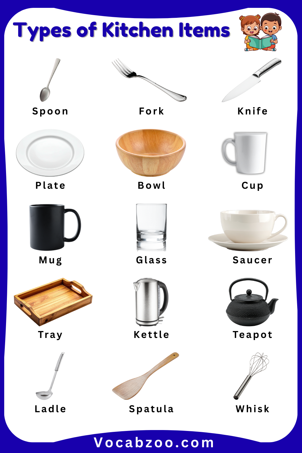 General Kitchen Items Names for Kids with Images