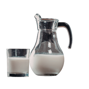 A jug is a container with a handle and narrow mouth used for storing and pouring liquids such as milk or water.