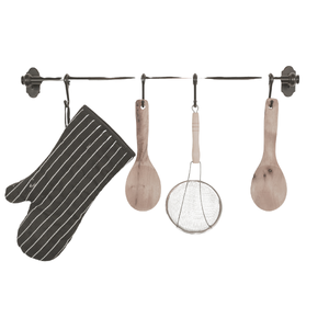 A rack is a frame with bars or shelves used to hold and organize kitchen items like dishes, spices, or baking trays.