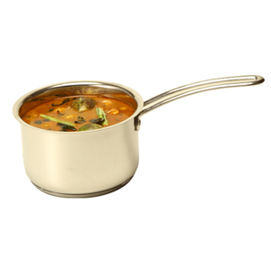 A saucepan is a deep cooking pot with a handle used for boiling, heating, or cooking sauces, soups, and small meals.